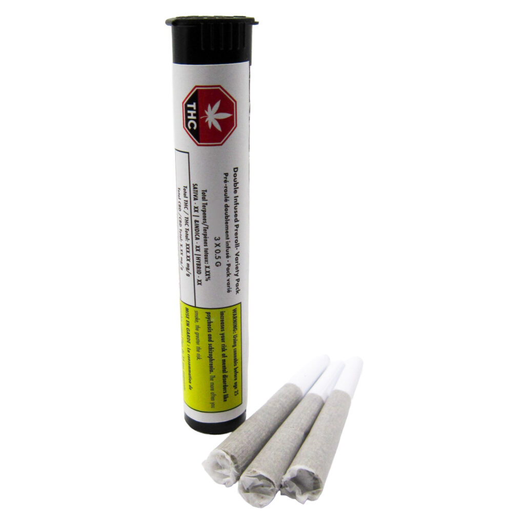 This Double-Infused Variety Pack delivers a trio of potent pre-rolls, each blending live resin and FSMI for a bold, diverse experience. Enjoy three unique strains in one sleek pack, perfect for exploring intense flavors and highs on the go.